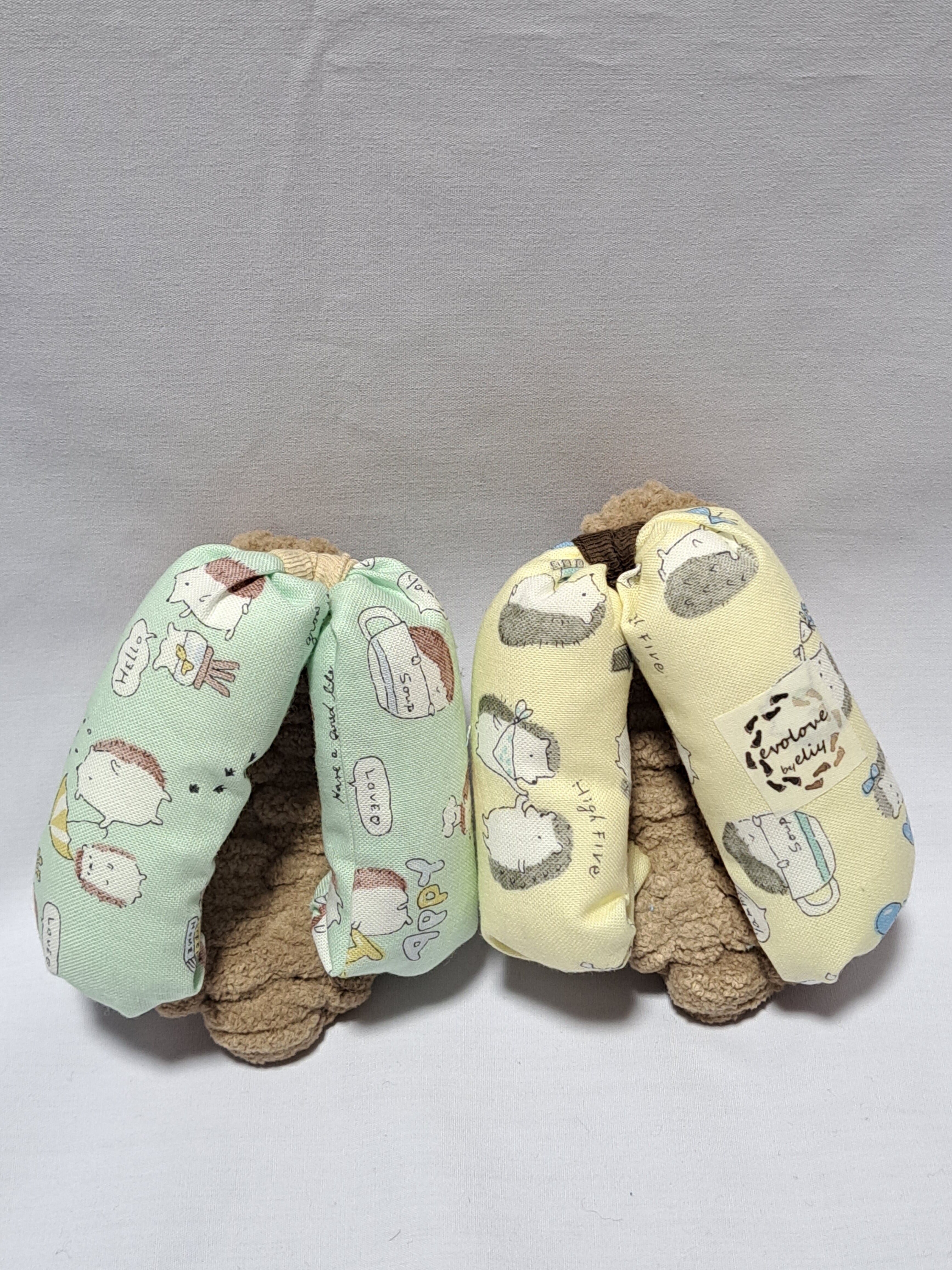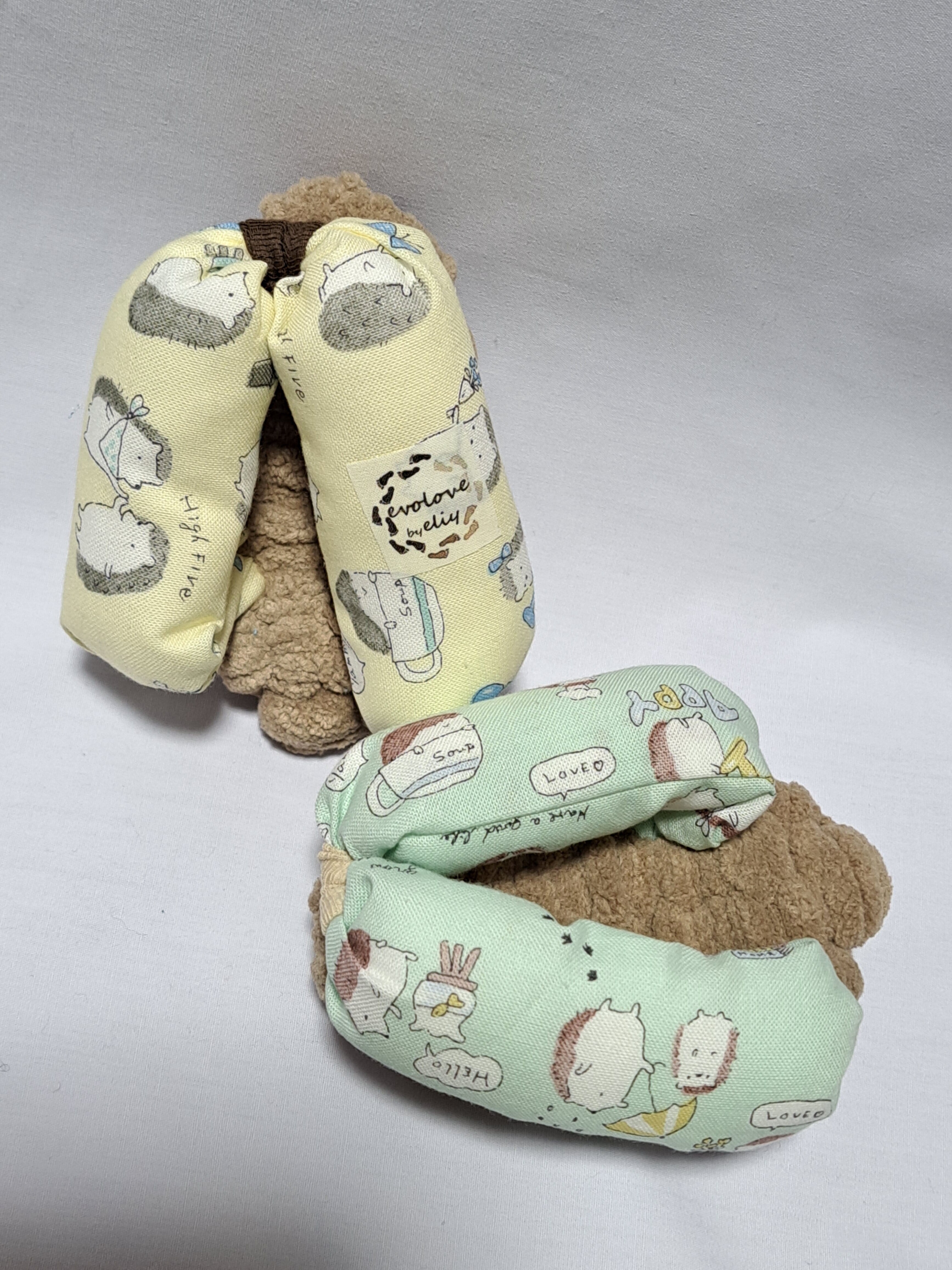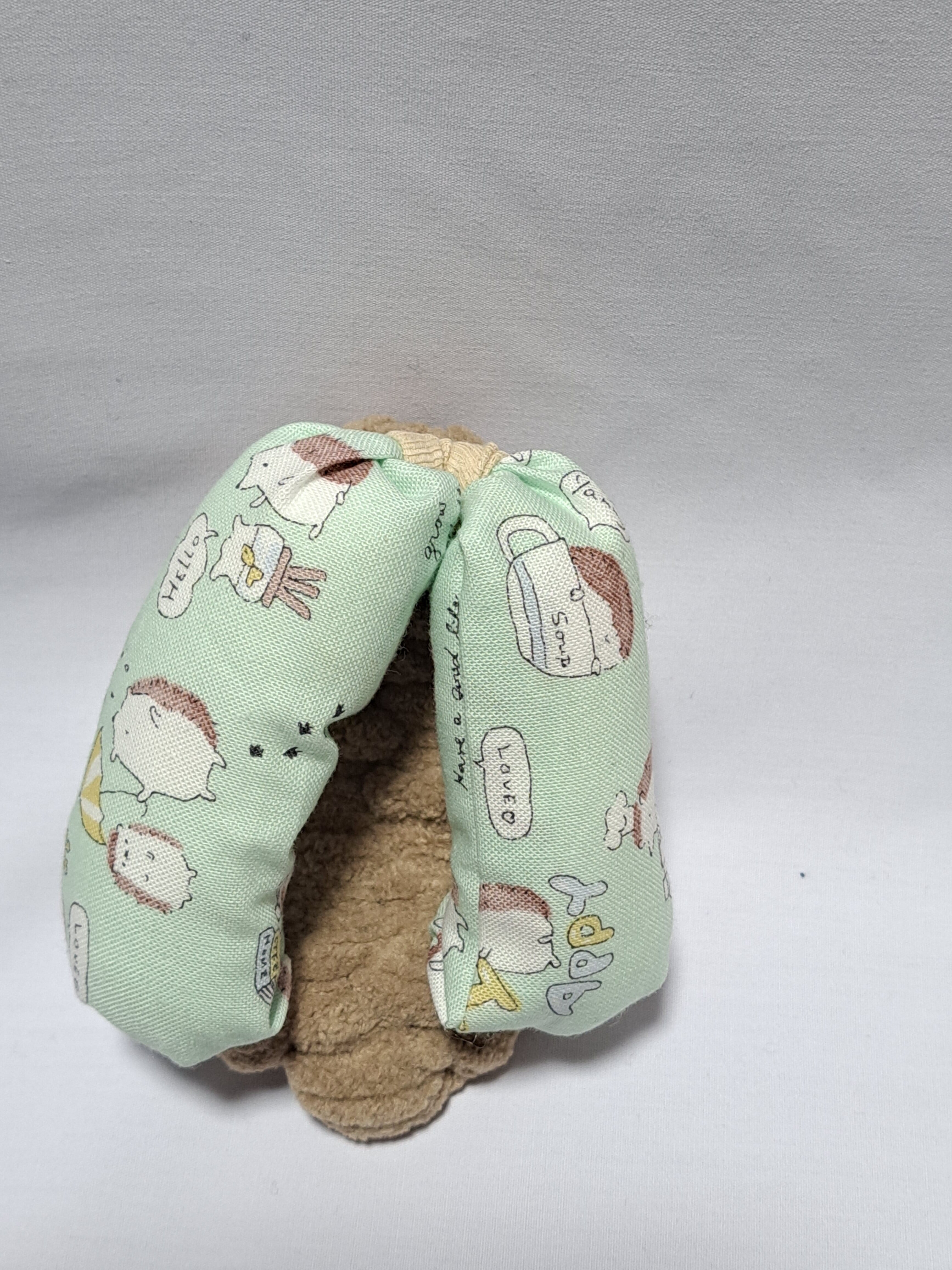 鼻緒が綿のエメラルドグリーン色とクリーム色地に可愛いもぐらのイラストが描かれております。