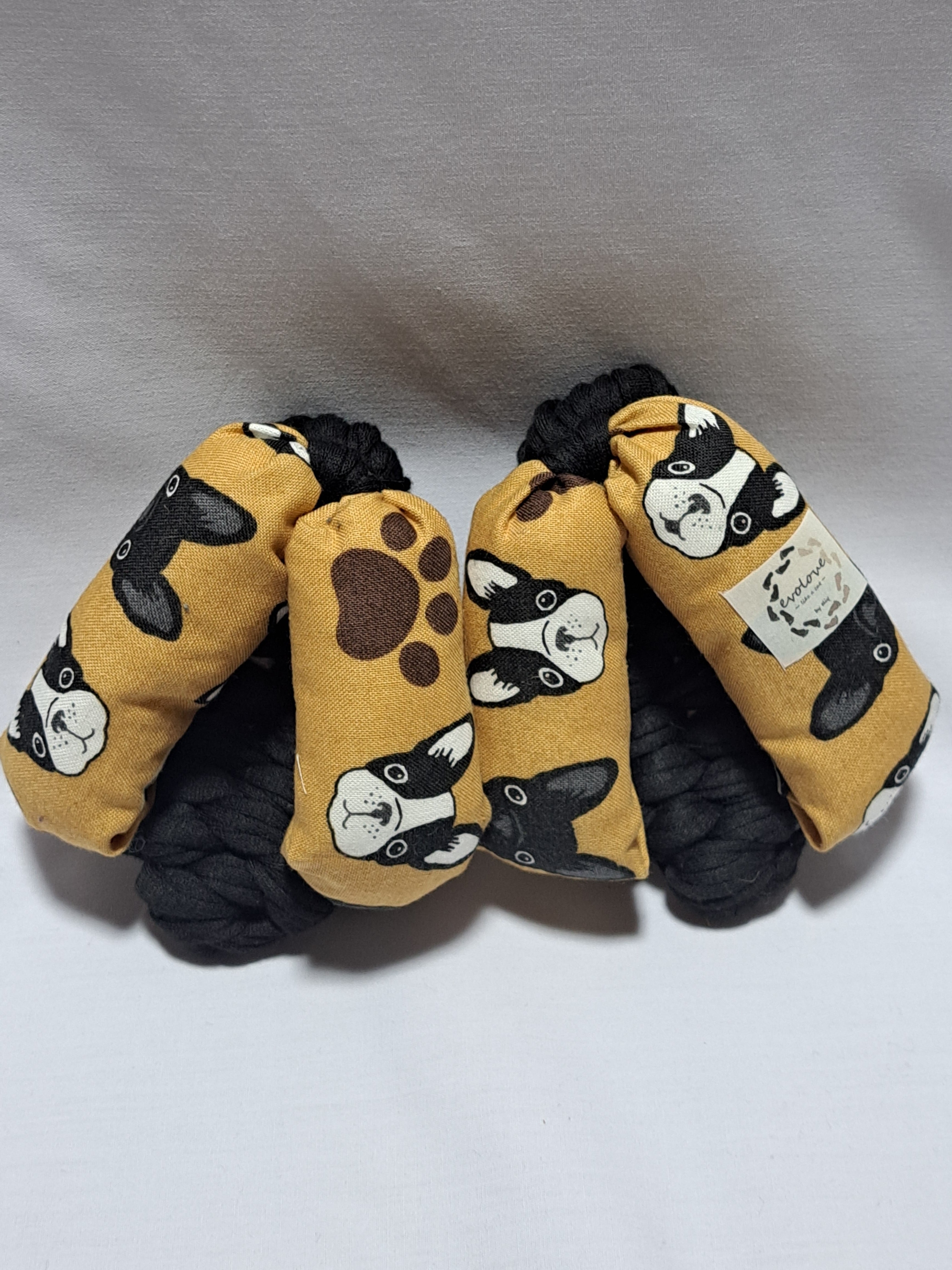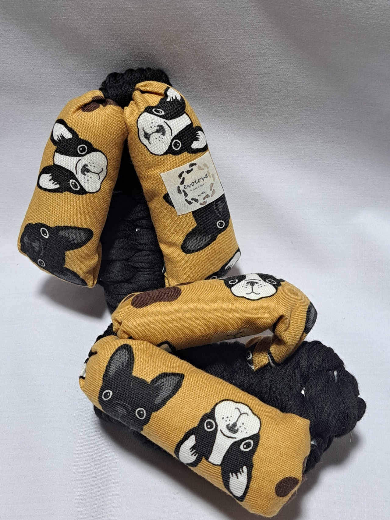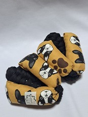 鼻緒は綿生地の黄土色で、ブルドッグのイラストが描かれて模様になっております。